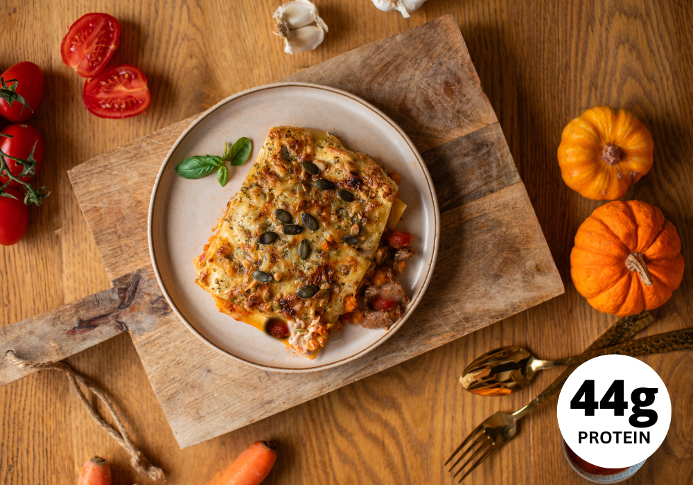Nos lasagnes sont la combinaison parfaite entre le goût italien traditionnel et les exigences nutritionnelles modernes. De tendres plaques de lasagnes farcies d'une savoureuse bolognaise à base de bœuf haché, de courge, de tomates et d'épices sont agrémentées d'un soupçon de fromage Gouda et empilées dans une sauce crémeuse. Ces lasagnes Meal Prep t'offrent un repas équilibré avec des protéines de qualité et des graisses saines. Avec 44 g de protéines par portion, les lasagnes sont idéales pour une alimentation consciente et des repas rapides. Il suffit de les réchauffer au micro-ondes ou dans une poêle et de les déguster en quelques minutes. Parfait comme meal prep pour la semaine ou pour un déjeuner ou un dîner sans complications.